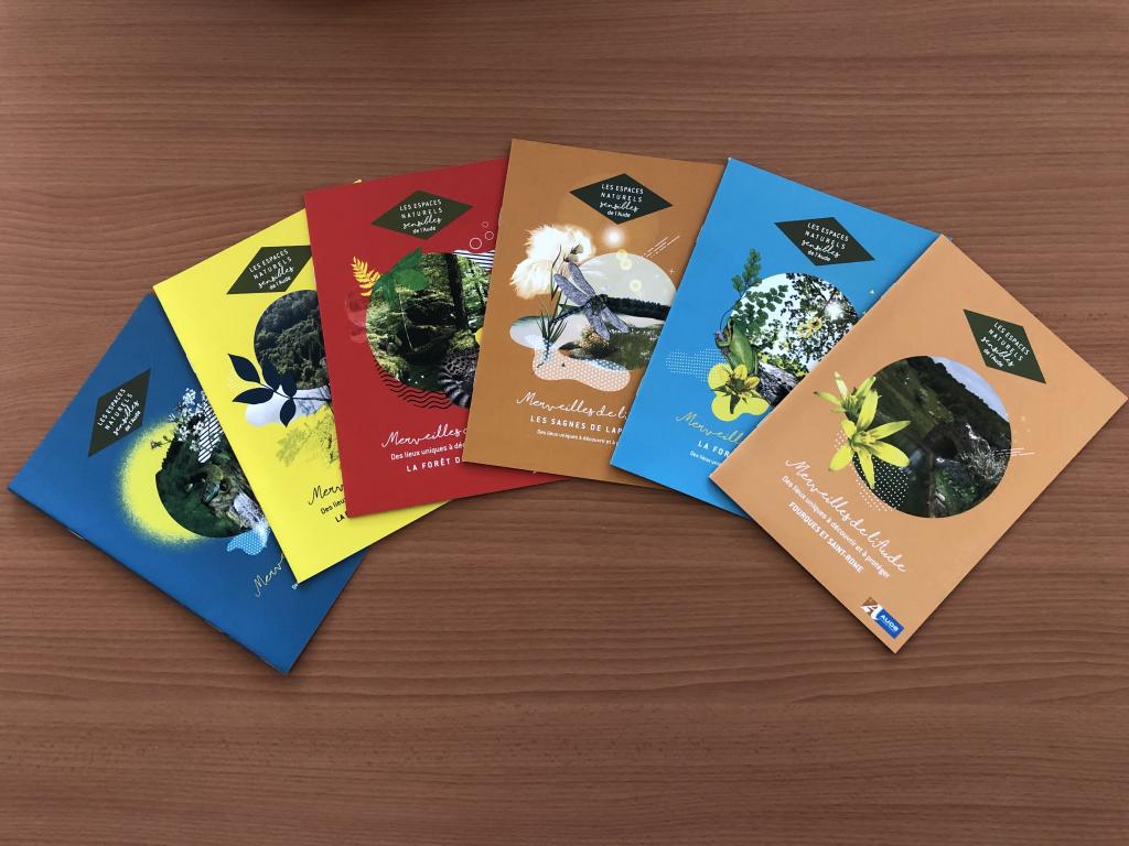 Cinq brochures ont été éditées, sur cinq espaces naturels sensibles de l'Aude :